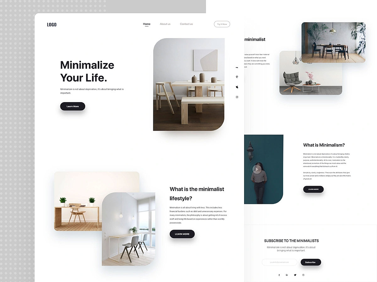 Minimalistisches Design bleibt zeitlos. Weniger Elemente, klare Linien und eine bewusste Reduzierung auf das Wesentliche – dieser Ansatz sorgt für eine bessere Benutzererfahrung und lädt schneller. 2025 gewinnt der Minimalismus durch gezielte Farbakzente, mutige Typografie und reduzierte Animationen an Dynamik. Ein anschauliches Beispiel ist das gezeigte Design, das durch seine einfache Farbpalette, harmonische Anordnung von Bildern und Text sowie subtile Schatteneffekte besticht. Diese minimalistische Herangehensweise lenkt den Fokus auf die Inhalte und sorgt gleichzeitig für eine elegante und moderne Ästhetik, die den Nutzer nicht überfordert, sondern ein entspanntes Nutzungserlebnis schafft.