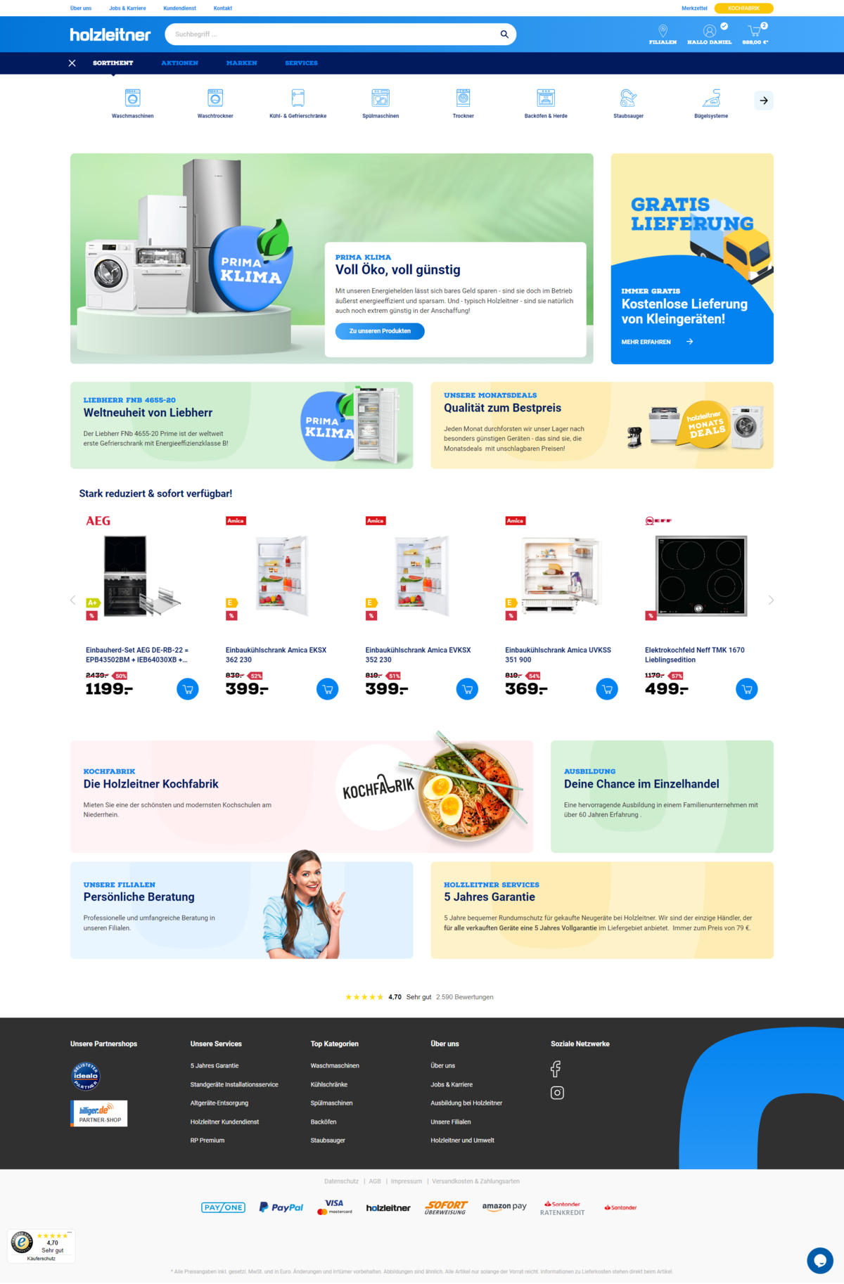 Wir waren zudem für die Shop-Konzeption und Gestaltung verantwortlich und standen vor der Aufgabe einer recht leidenschaftlosen Produktwelt, wie Waschmaschinen oder Spülmaschinen, ein frisches und emotionales Aussehen zu geben.