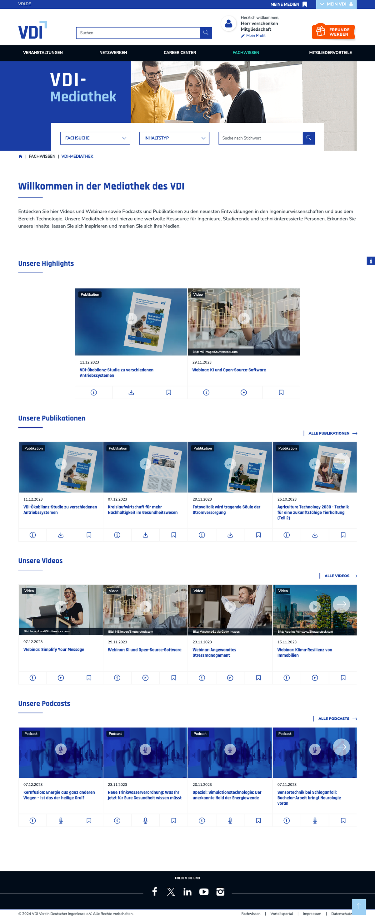 Die Mediathek ist sowohl für Mitglieder im „Mein VDI"-Bereich als auch für Nicht-Mitglieder im öffentlichen Bereich, allerdings nur eingeschränkt, aufrufbar.
