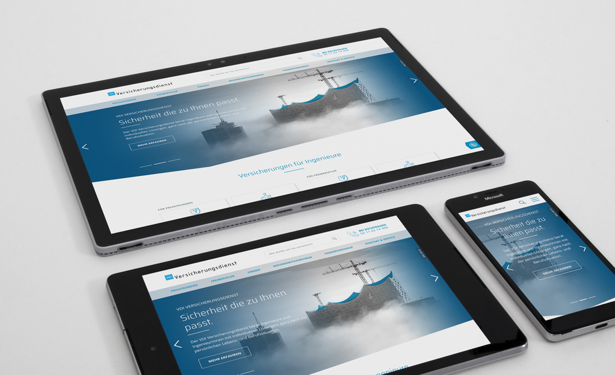 Der VDI Versicherungsdienst ist eine Tochter der VDI GmbH und bietet zuverlässigen und kompetenten Versicherungsschutz für Ingenieure an. Die alte Website entsprach nicht mehr dem modernen Zeitgeist und konnte kommunikativ auch nicht zu vielen Anfragen führen. jwied übernahm Konzept, UX-Design & Entwicklung in TYPO3.
