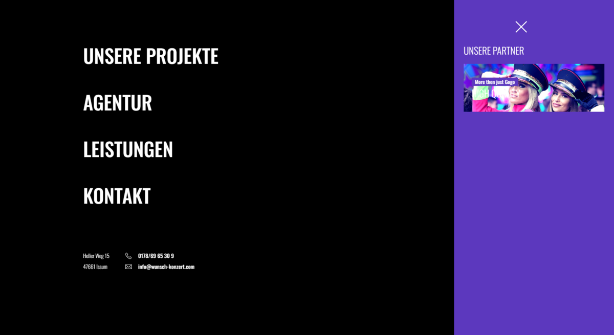 Die Agentur Wunsch-Konzert bietet vielfältige Dienstleistungen im Event-Bereich an und unterstützt Kunden bei der Konzeption und Durchführung von kleinen und großen Veranstaltungen. Dabei unterstützt die Agentur namhafte Künstler wie Scooter oder bespielt große Festival-Formate wie Parookaville und Rock am Ring.